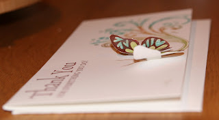 *Tip: take a dyer sheet to rub on the paper around your design to keep from getting those loose flecks of powder all over the cardstock. Stampin up also has a "embossing buddy" that does the same thing.
